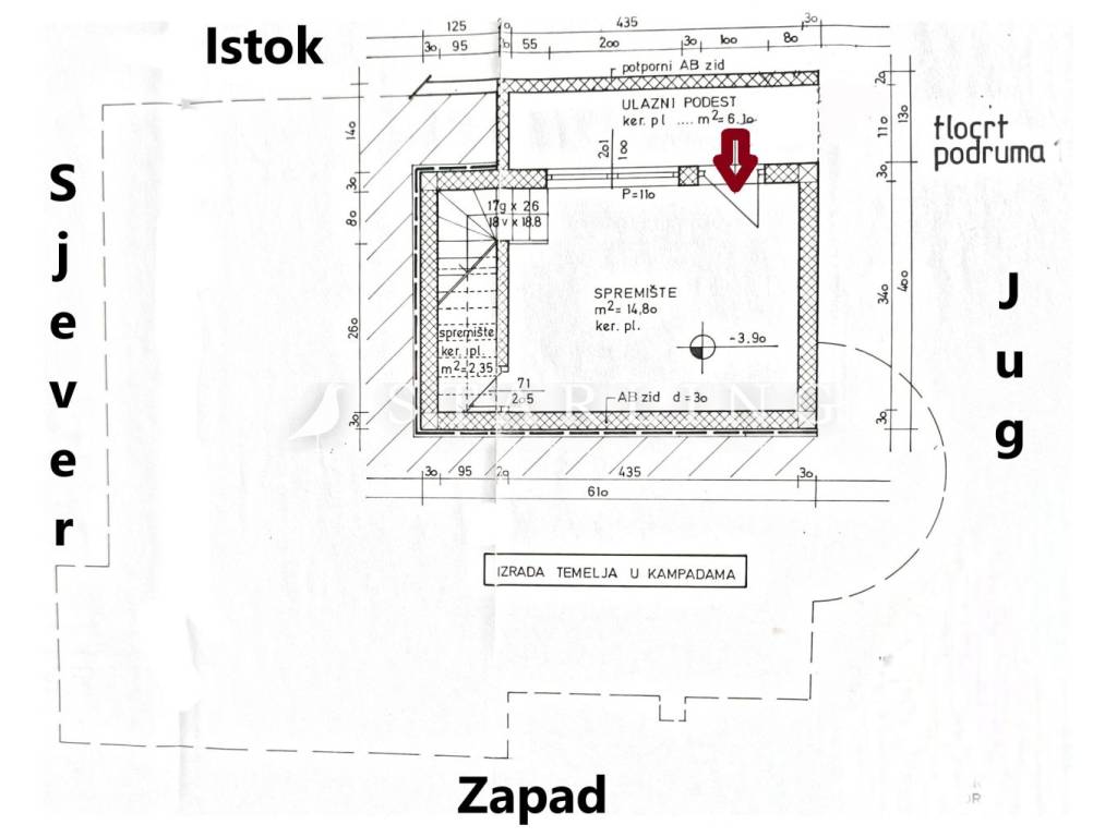 Kuća se sastoji od tri etaže, odnosno podruma, prizemlja i potkrovlja.