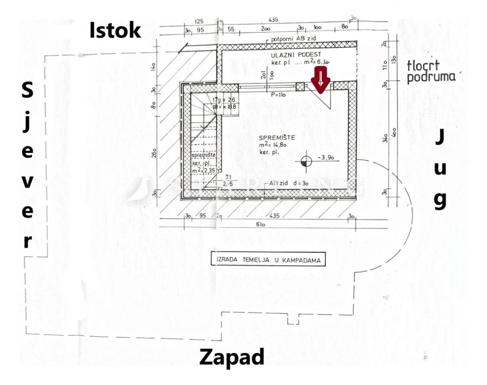 Podrum se sastoji od jedne prostorije, koja je osmišljena kao uredski prostor, te ima svoj vlastiti vanjski ulaz.