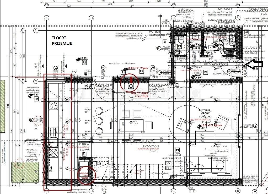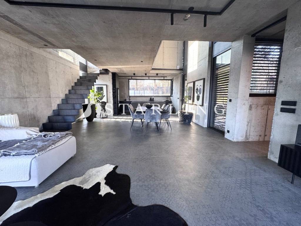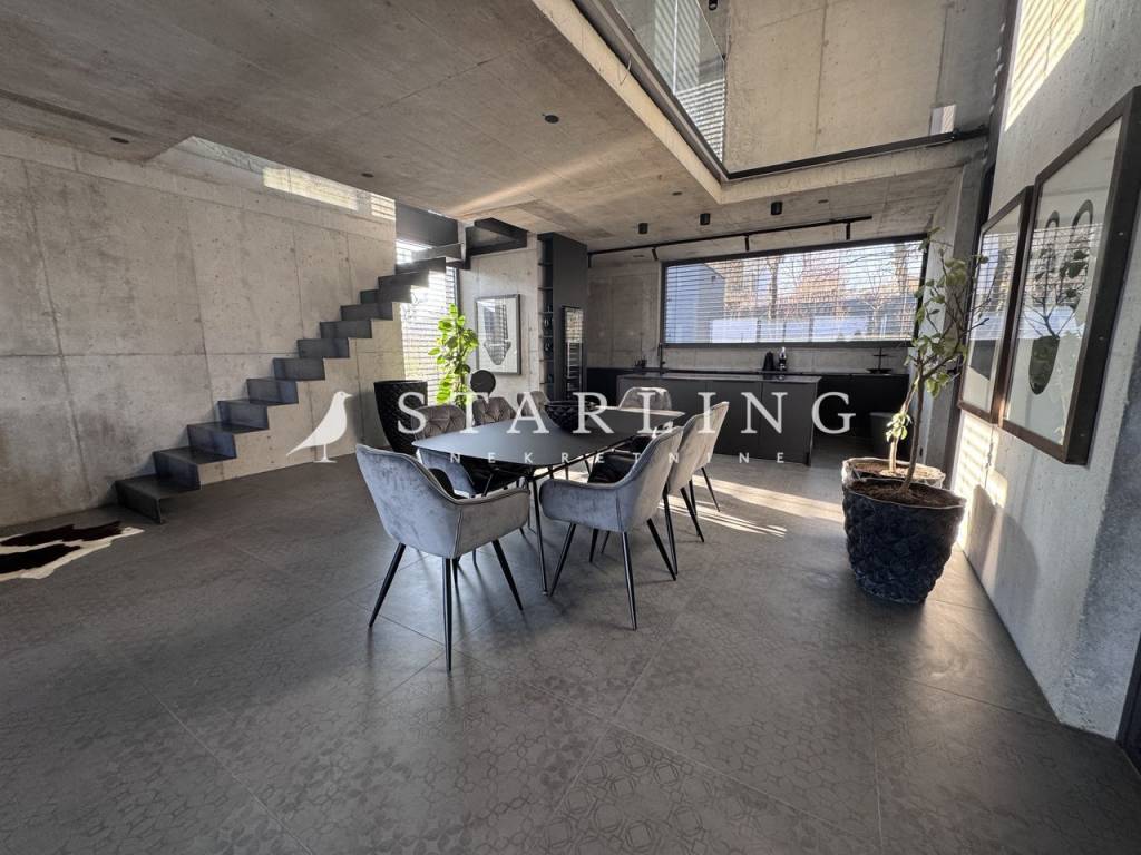 U prizemlju se nalazi open space dnevni boravak s kuhinjom i blagovaonicom, wc i garderoba.
