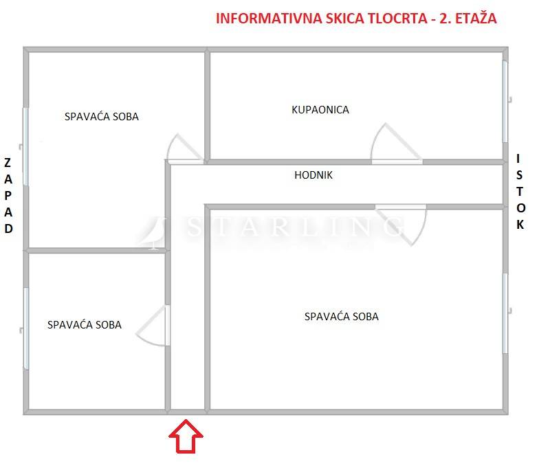 DRUGE ETAŽE gdje se nalaze tri spavaće sobe te kupaonica s WC-om.