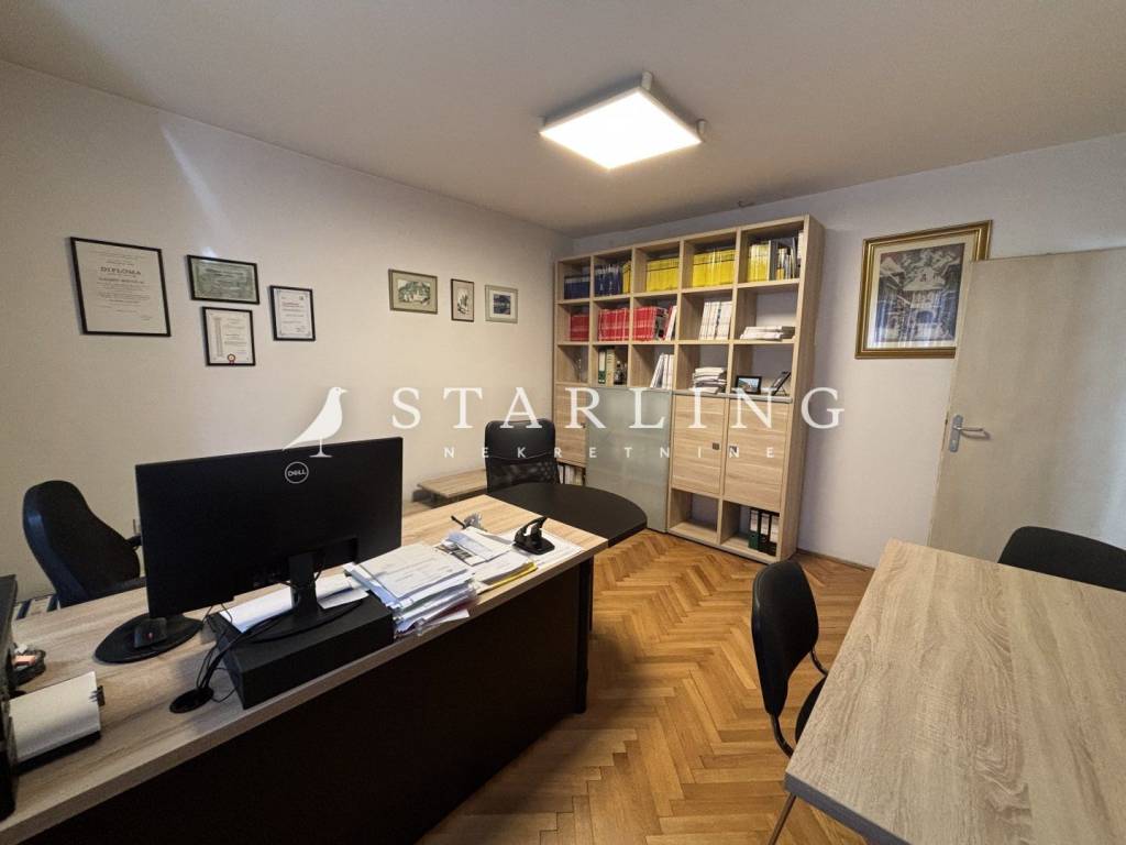 Poslovni prostor sastoji se od prostranog open-space prostora, zasebnog ureda, kuhinje s blagovaonicom, kupaonice s WC-om i dva balkona.