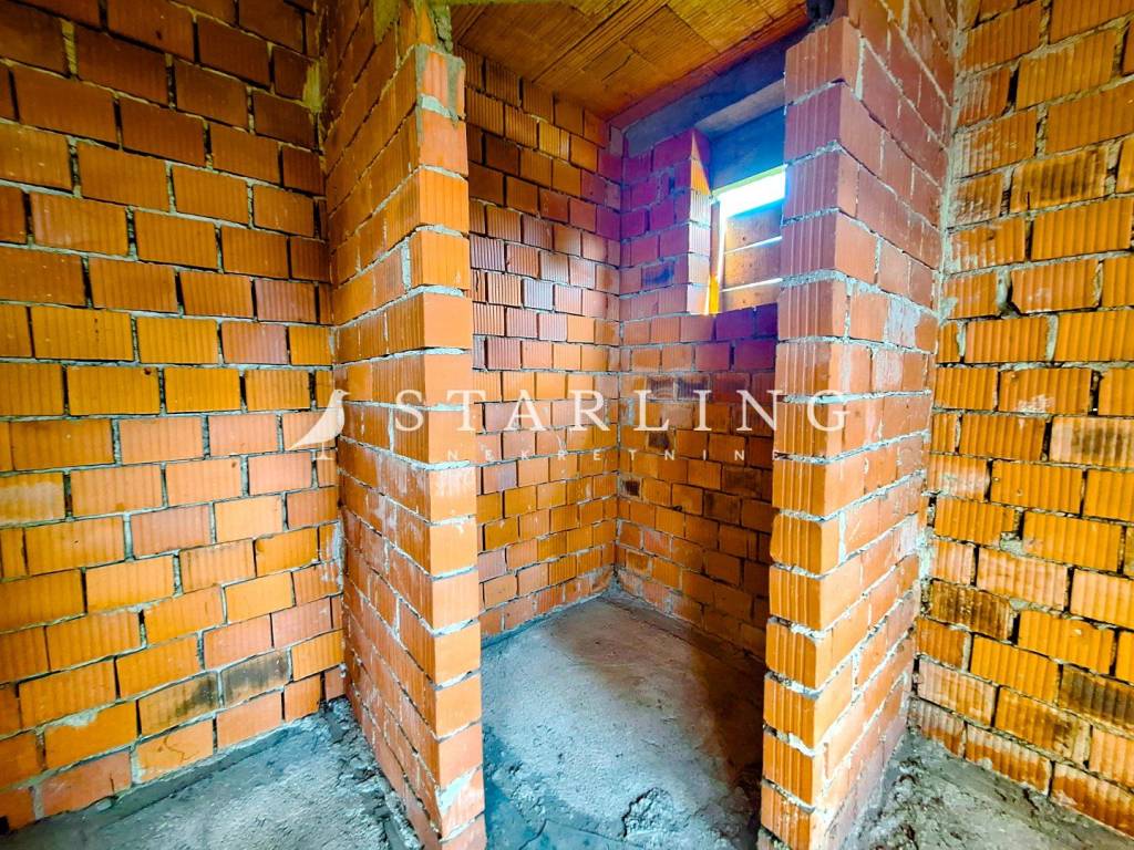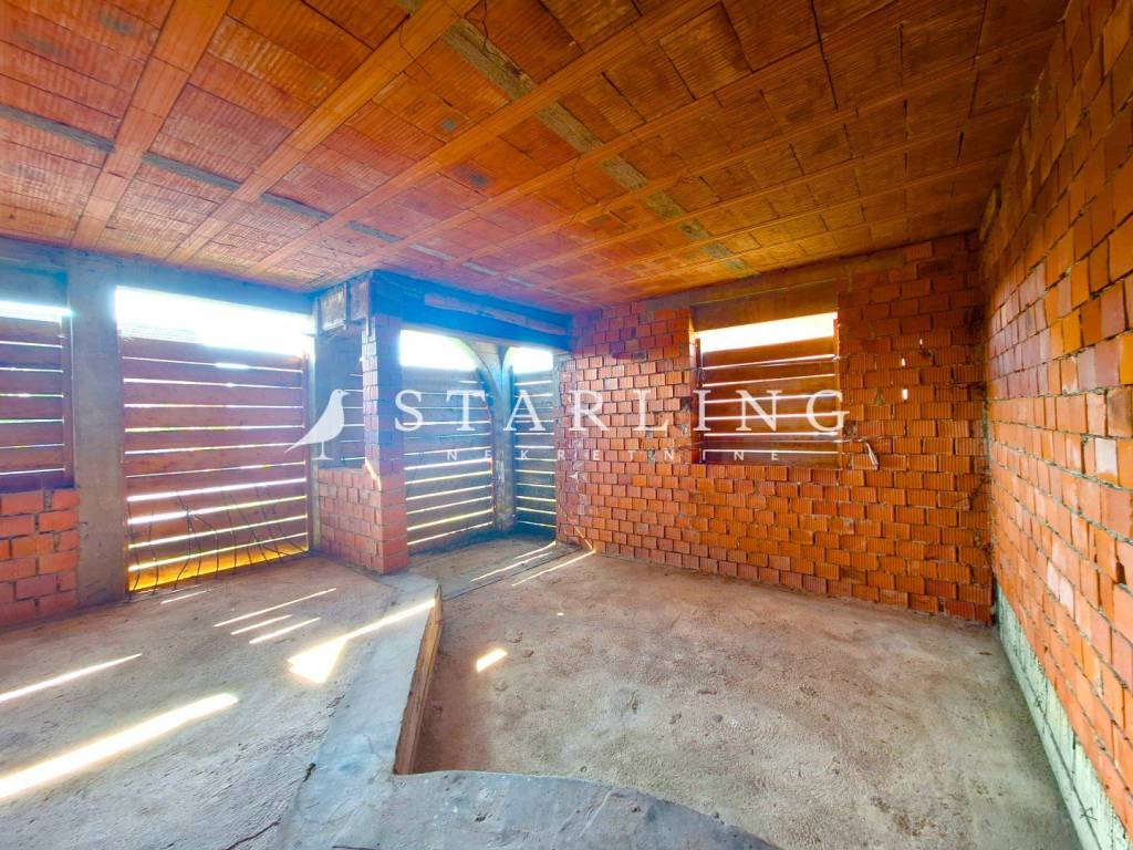 Parcela pored od 307 m2 je također uključena u cijenu. Kuća je izgrađena do ove faze 1992.godine, nije završena i prodaje se u trenutačnom stanju.