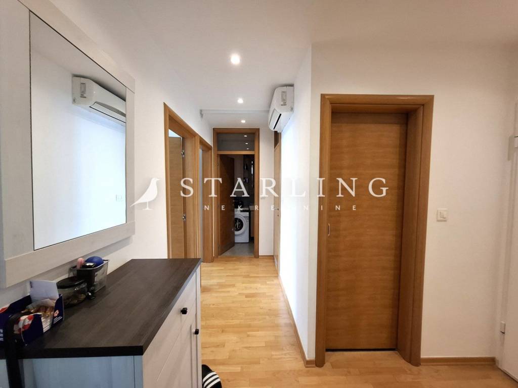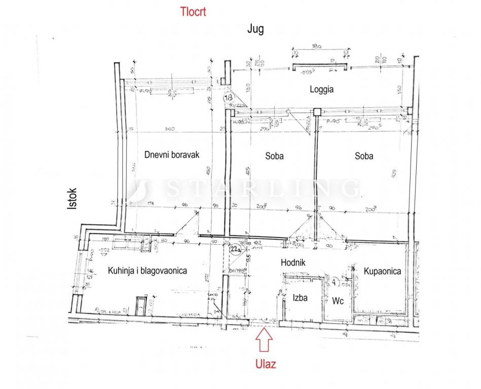 Stan se sastoji od dnevnog boravka, kuhinje i blagovaonice, dvije spavaće sobe, kupaonice, wc-a, loggie, izbe i hodnika.