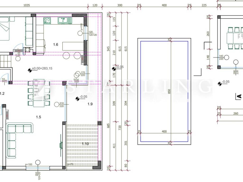 Za zemljište je ishođena građevinska dozvola, a komunalni doprinosi su već plaćeni, što znači da je sve spremno za početak gradnje bez dodatnih ulaganja. Projektom je predviđena moderna kuća netto površine 216 m² s četiri spavaće sobe savršeno za obiteljski život, odmor ili investiciju u turizam.