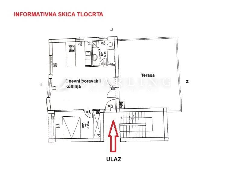 Stan se sastoji od dnevnog boravka, kuhinje s blagovaonicom, spavaće sobe, kupaonice s WC-om i terase.