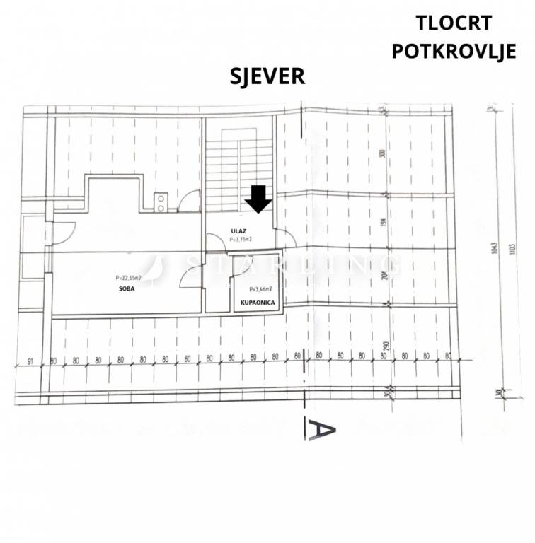 U potkrovlju se nalazi stan koji se sastoji od dnevnog boravka s blagovaonicom, kuhinje, dvije spavaće sobe, kupaonice, hodnika i terase.