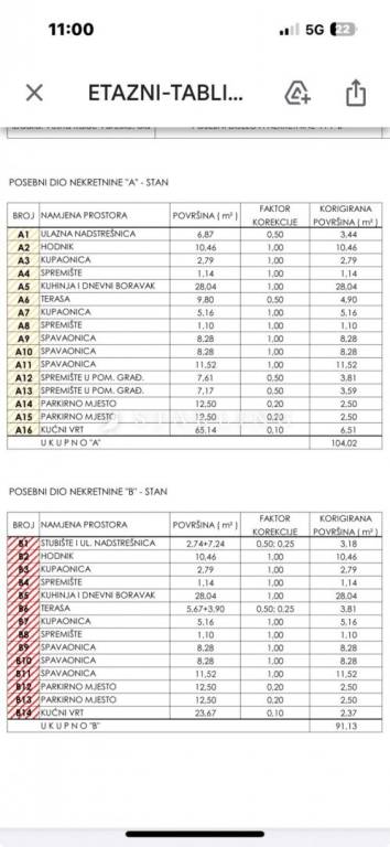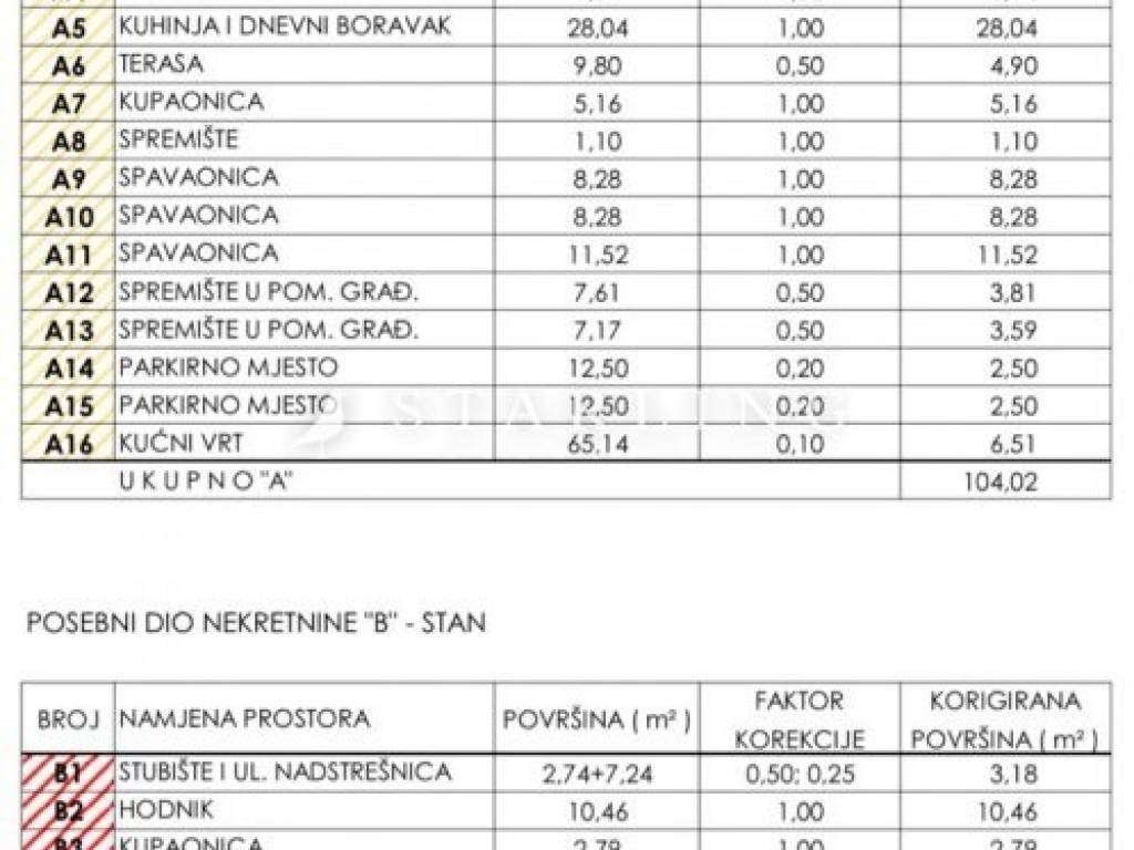 jednog stana veličine 104 m2 – prostrani trosobni stan s dnevnim boravkom, kuhinjom, dva kupatila i terasom.