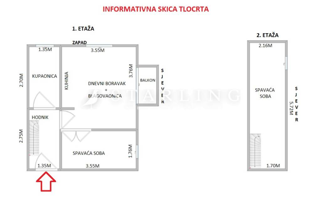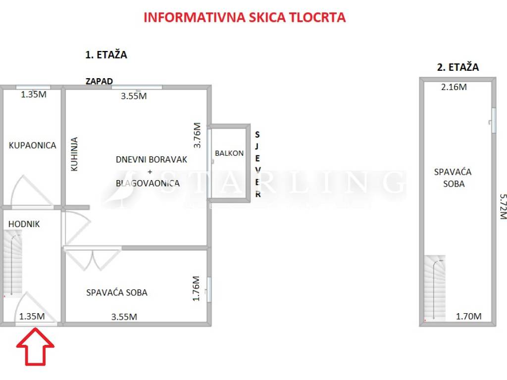 DRUGOG KATA: dnevnog boravka s kuhinjom i blagovaonom, spavaće sobe, hodnika, kupaonice s WC-om i balkona