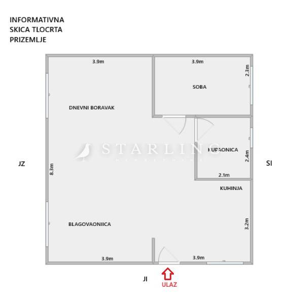 Iznajmljuje se dvosoban stan površine 67 m2 u prizemlju kuće.