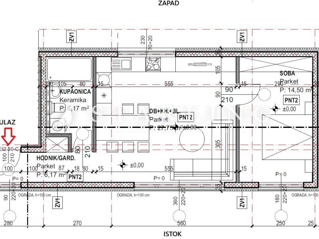 Uz stan je obavezna kupnja jednog vanjskog parkirnog mjesta po cijeni od 9600 €.