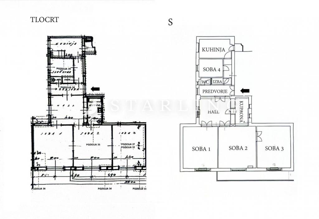 Prodaje se četverosoban stan površine 132 m2 na 1. katu zgrade s novo postavljenim liftom.