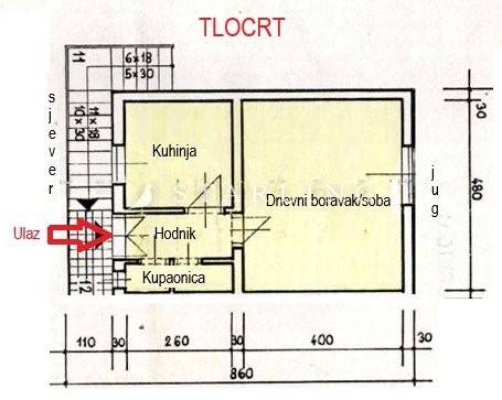 Stan se sastoji od dnevnog boravka/spavaće sobe, kuhinje, kupaonice i hodnika.