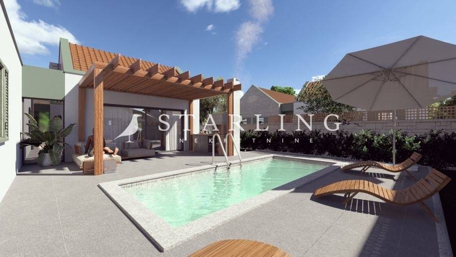 Kuća se sastoji od dnevnog boravka s kuhinjom i blagovaonicom, tri spavaće sobe, dvije kupaonice s wc-om, ulaznog hodnika i terase.
