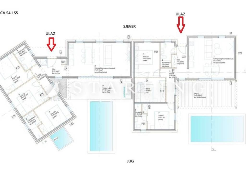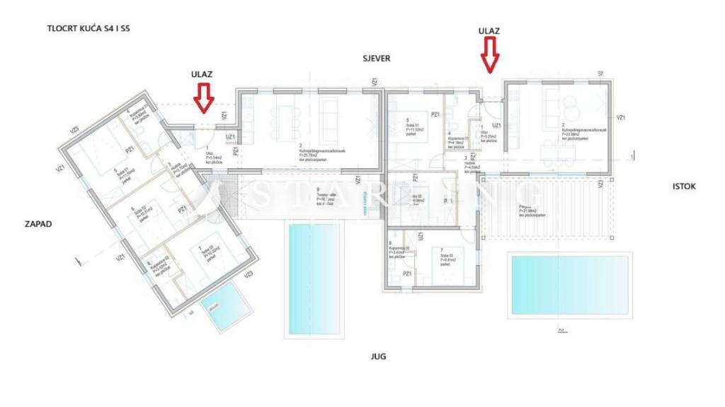 Orijentacija: jug-zapad-sjever te jug-istok-sjever