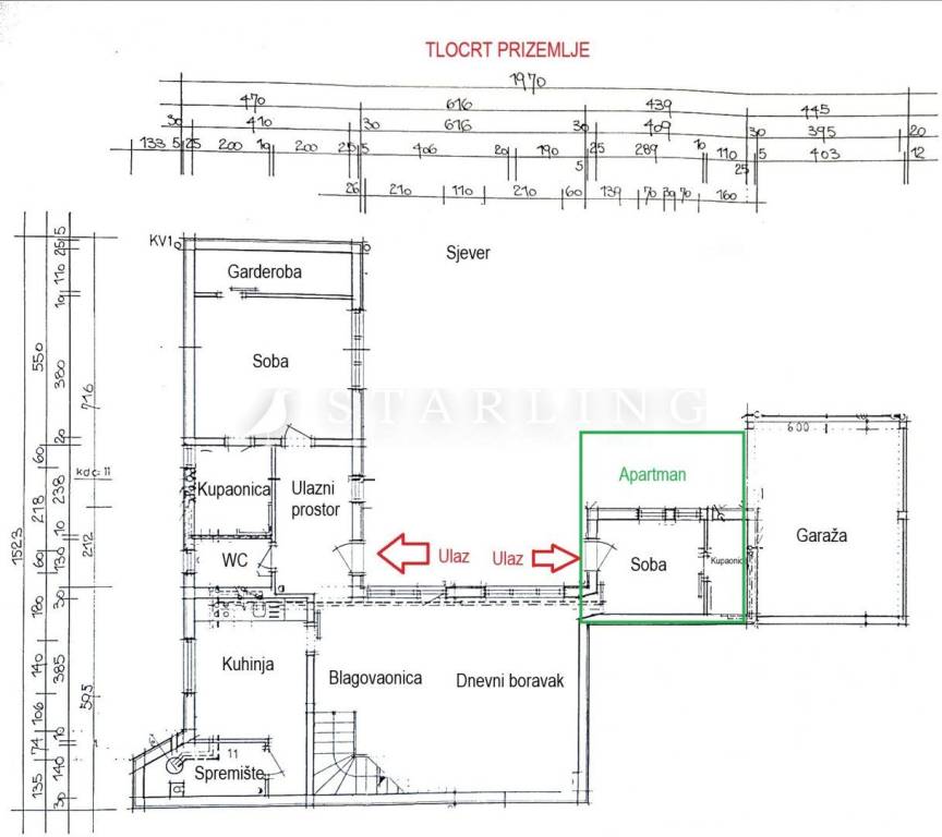 U prizemlju se također nalazi i odvojeni apartman za goste koji se sastoji od sobe i kupaonice te garaža.