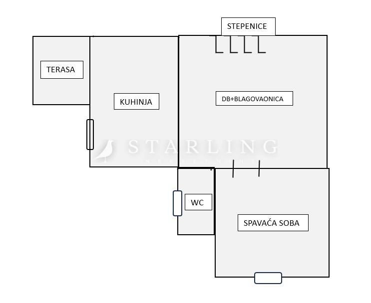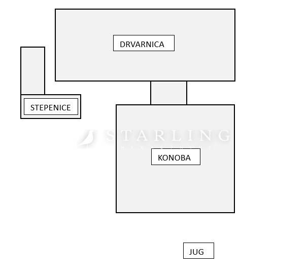 Kamena kuća se sastoji od spavaće sobe, dnevnog boravka s blagovanicom, te kupatilom s WC-om i terasom na ulazu (70 m2).