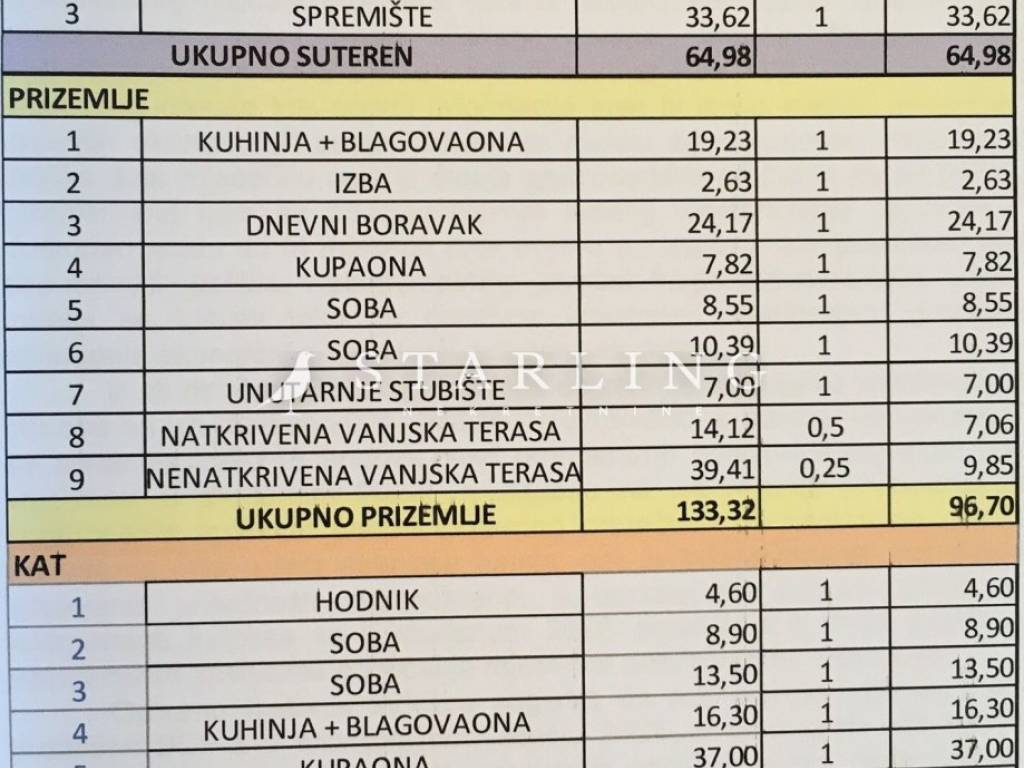 Površina okućnice je 1000 m2 te ima dovoljno mjesta za bazen, parking i sve što je potrebno za ugodan boravak.