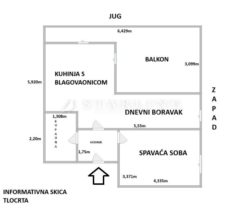 Neto kvadratura stana sa svim pripadcima iznosi 56 m2.
