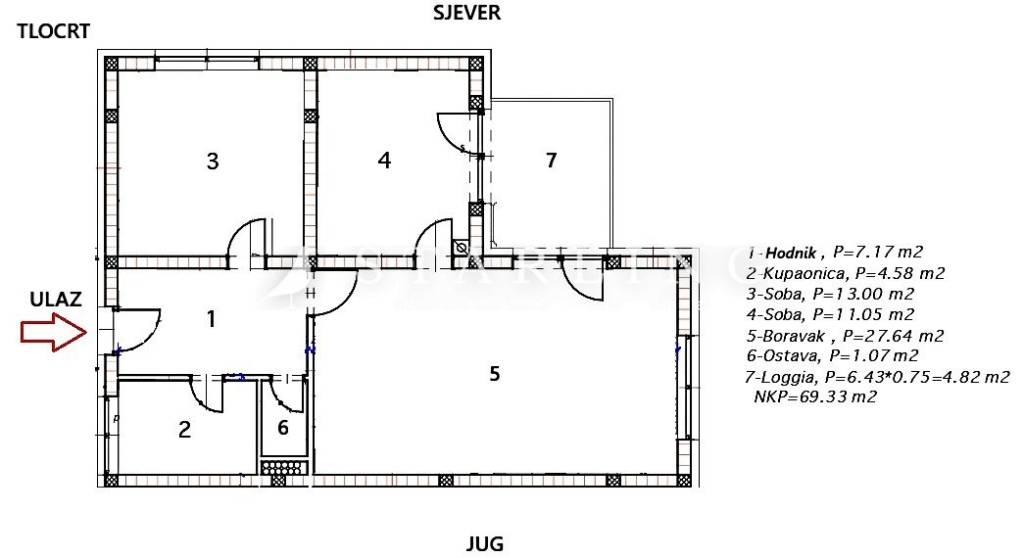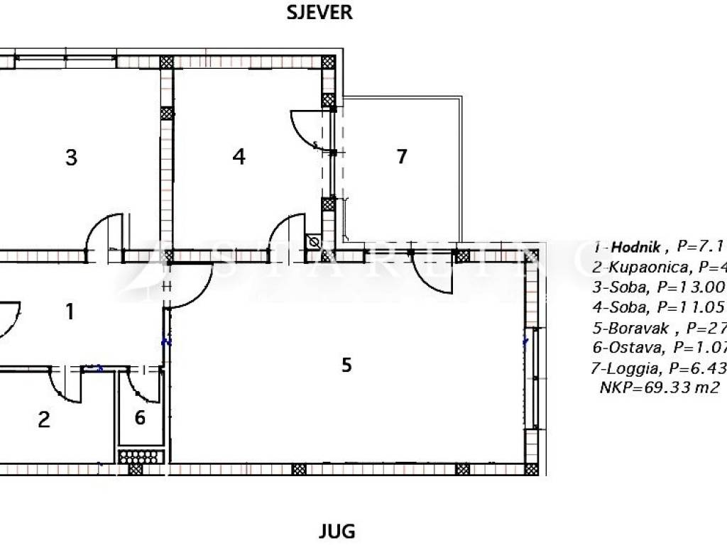 Prodaje se trosoban stan površine 69 m2 u prizemlju zgrade bez lifta.