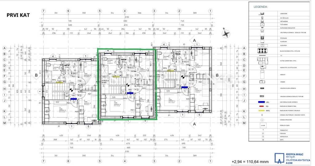 - DVA VANJSKA PARKIRNA MJESTA svako površine 13.5 m2 (obračunato po koeficijentu 5,4 m2)