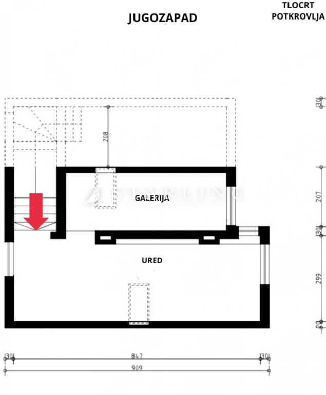 Potkrovlje se sastoji od: galerije i uredske prostorije.