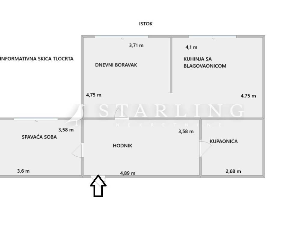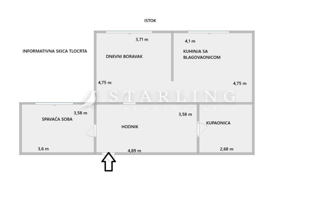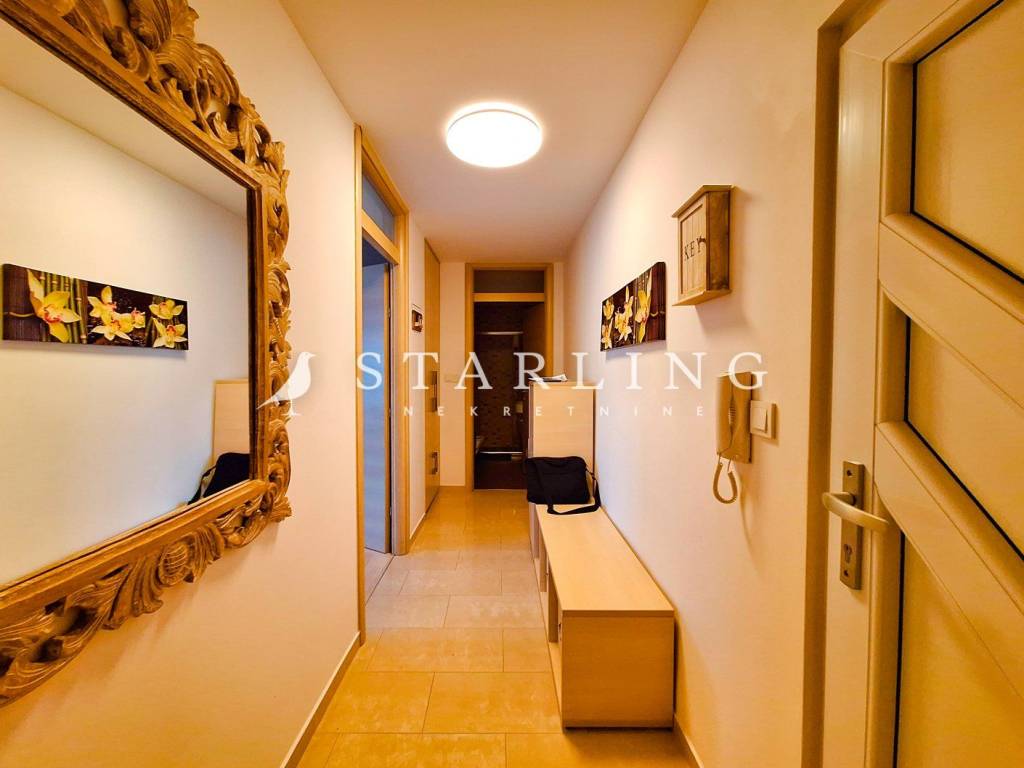 Stan se sastoji od dnevnog boravka, kuhinje i blagovaonice, spavaće sobe, kupaonice s wc-om te ulaznog hodnika. Stan se prodaje kompletno namješten te je spreman za useljenje bez dodatnih ulaganja. Instalacije struje i vode su promijenjene 2015. godine. Stanu pripada i spremište u podrumu od 4 m2.