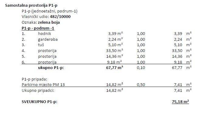 Apartman se sastoji od 3 prostrane prostorije, kupaonice sa tušem te garderobe, velike staklene površine omogućuju obilje prirodnog svjetla. Apartmanu pripada privatna terasa sa prekrasnim pogledom i mogućnost korištenja zajedničog bazena ove luksuzne novogradnje. Dodatna pogodnost je i privatno mjesto u garaži površine 13.66 m2.