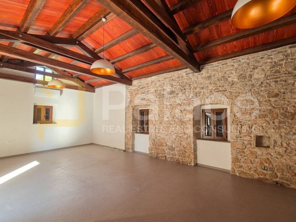 Ova stancija je pravo blago, obnovljena s ljubavlju uz očuvanje autohtonog istarskog stila, gdje kamen i drvo pričaju priču o prošlim vremenima. U prizemlju se prostire veliki dnevni boravak i kuhinja s drvenim gredama, obasjane prirodnim svjetlom. Tu su i moderna kupaonica, vešeraj, te soba s vlastitom kupaonicom koja nudi privatnost i udobnost.