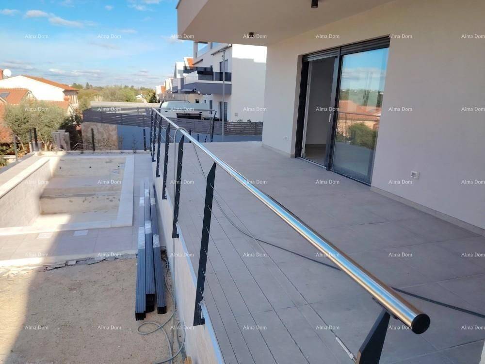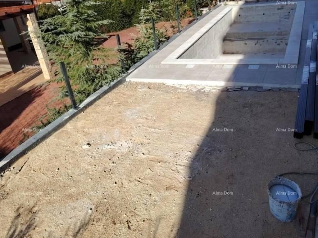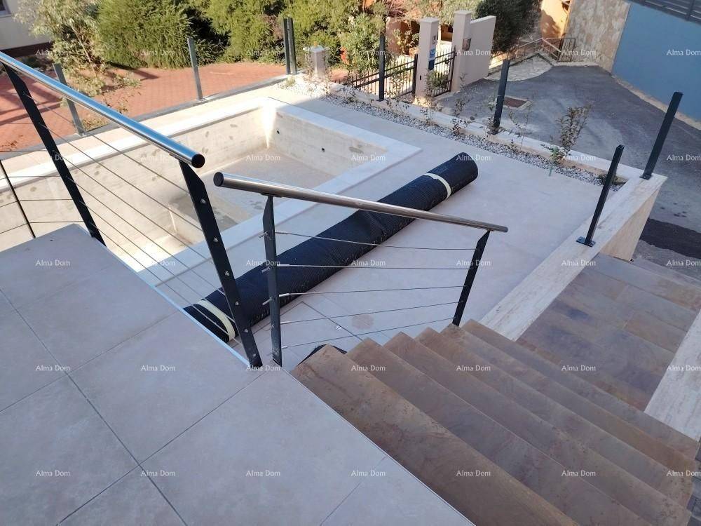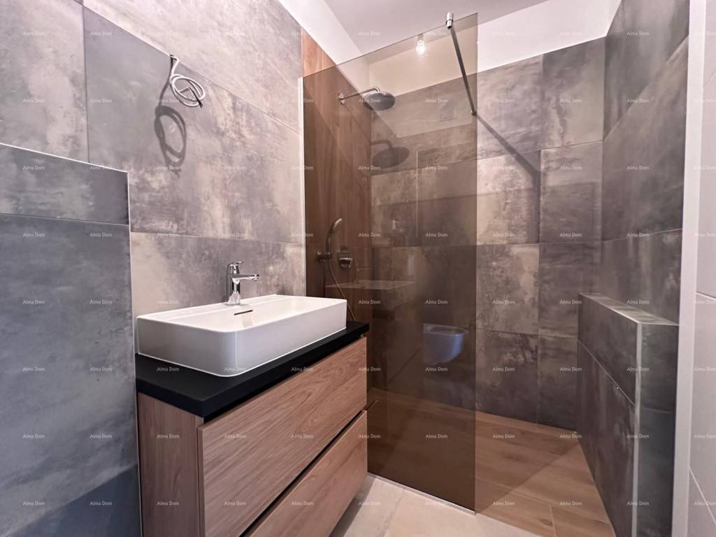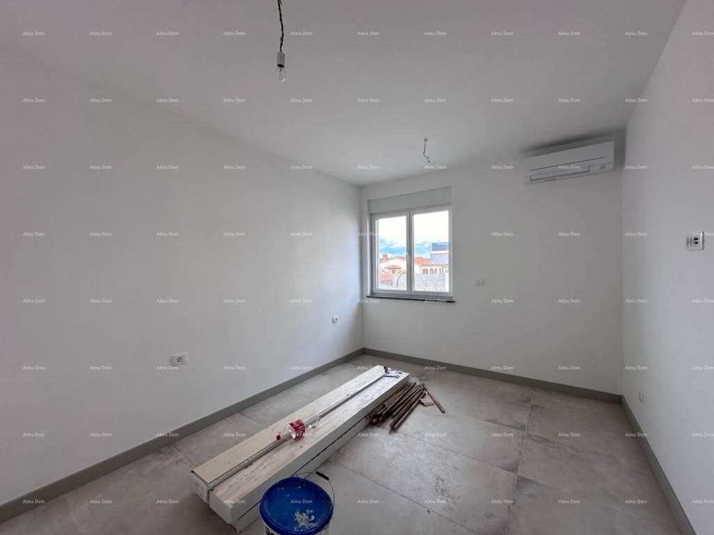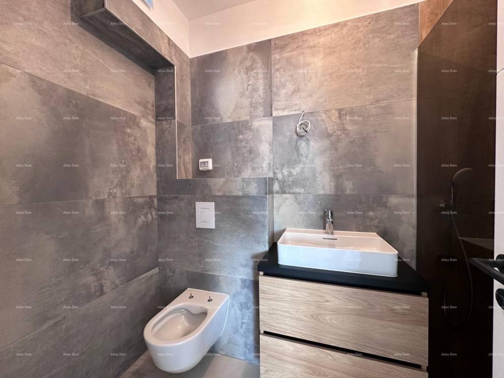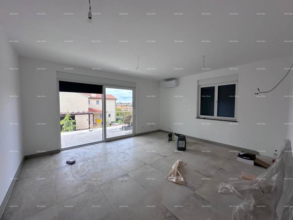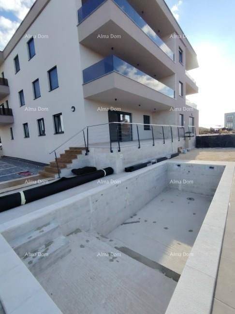 Blizina Banjola! Luksuzna novogradnja!Stan 1, prizemlje - 109.91 m2, sastoji se od sljedećih prostorija:- prostorno predsoblje od 16.47 m2,- kuhinja sa blagovaonom i dnevnim boravkom - 23.9 m2 iz koje se izlaze na veliku natkrivenu terasu od 16.50 m2 s pogledom na more.Na terasi su izvjedene sve potrebne instalacije za ugradnju ljetne kuhinji i jacuzzi. S terase niz stepenica je zona odmora s bazenom i sunčalištem. Kupca čeka odluka za obloge u bazenu -folija, pločice ili drugo.Dalje u stanu ima- spavaća sobe od 10.81 m2,- spavaće sobe od 12.73 m2 s izlazom na terasu- spavaće sobe od 14.64 m2 sa svojim kupatilom od 4.56 m2- kupatilo od 6.87 m2.Ukupne površine stana bez terasei drugih pripadajučih površina je 93 m2.Stanu pripada parkirno mjesto ispred zgrade.Podno grijanje u svim prostorijama, a svakoj prostoriji je zaseban termostat za regulaciju temperature.U dnevnom boravku je digitalni termostat koji se može paliti/gasiti preko mobilnog uređaja.U svakoj sobi je Mitsubischi klima uređaj.Prozore su troslojne s aluminijskom stolarijom.Na svim prozorima su električne rulete i komarnici.Zgrada je izolirana termo fasadom od 15 cm.Info:+385 91 611 5706azra@almadominvest.com+385 98420885www.almadom.com.