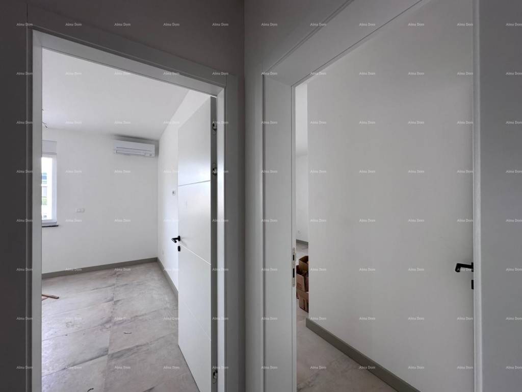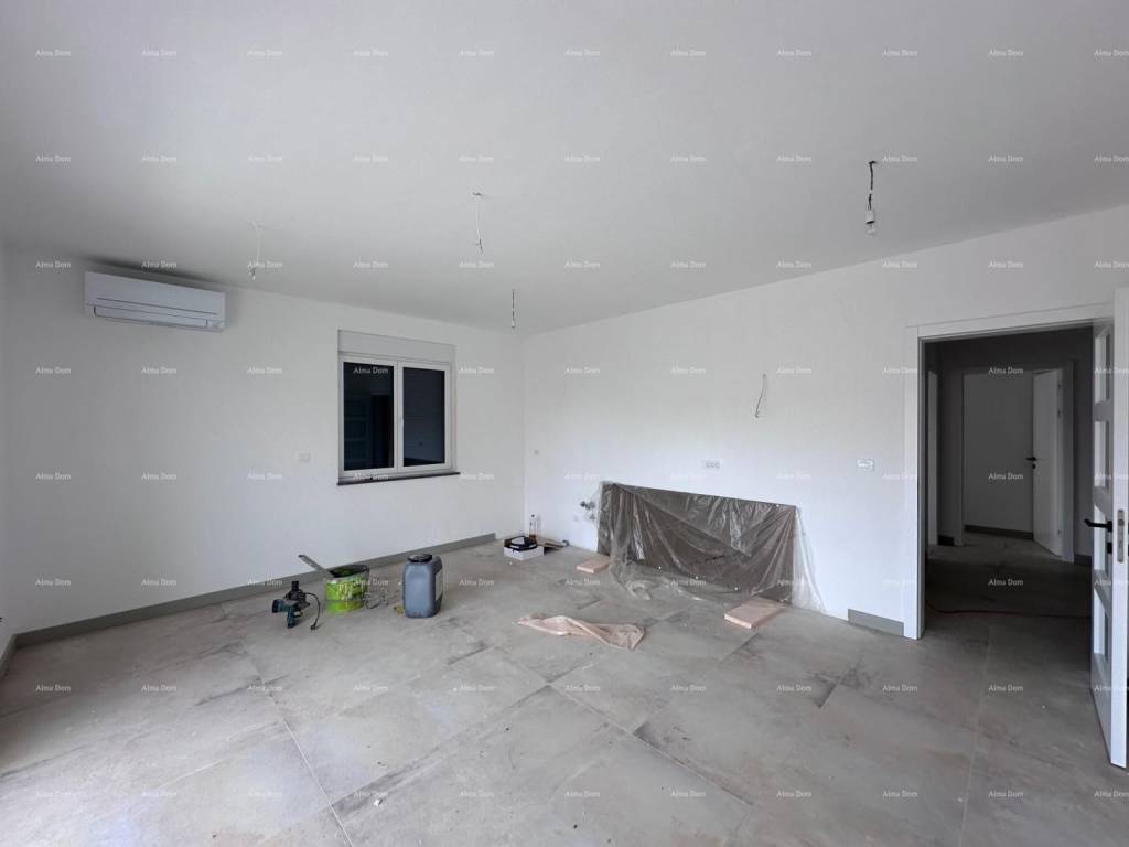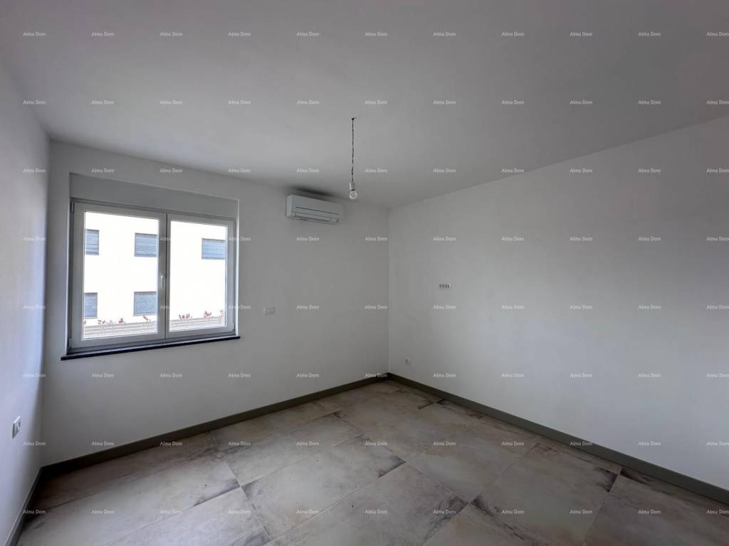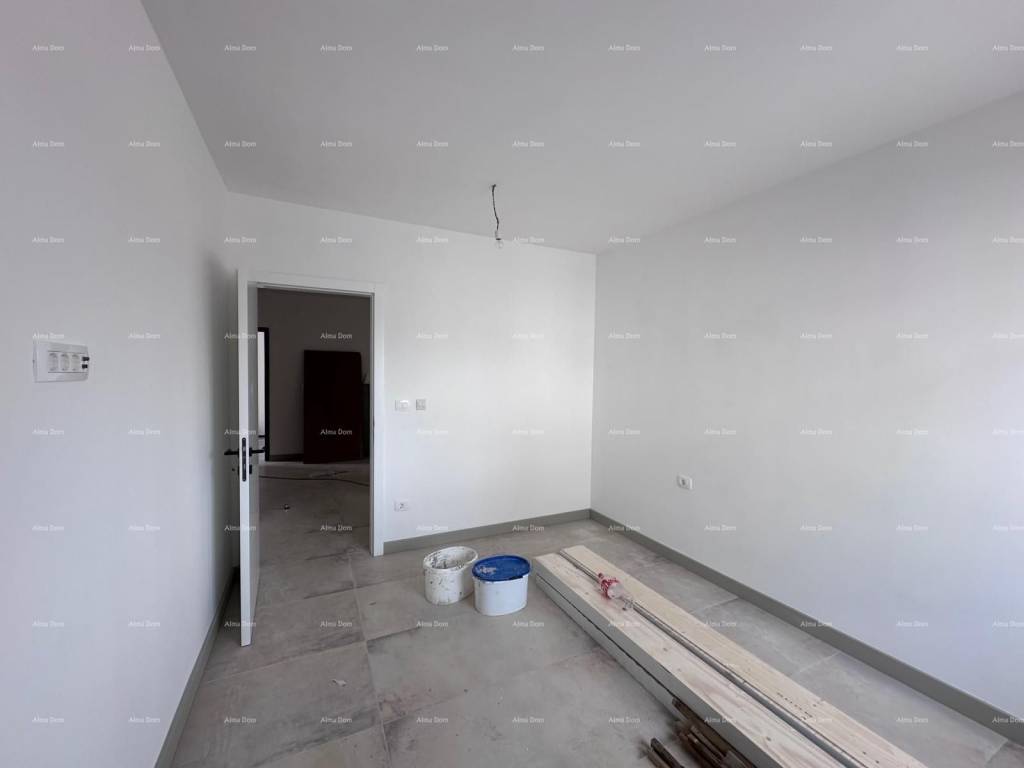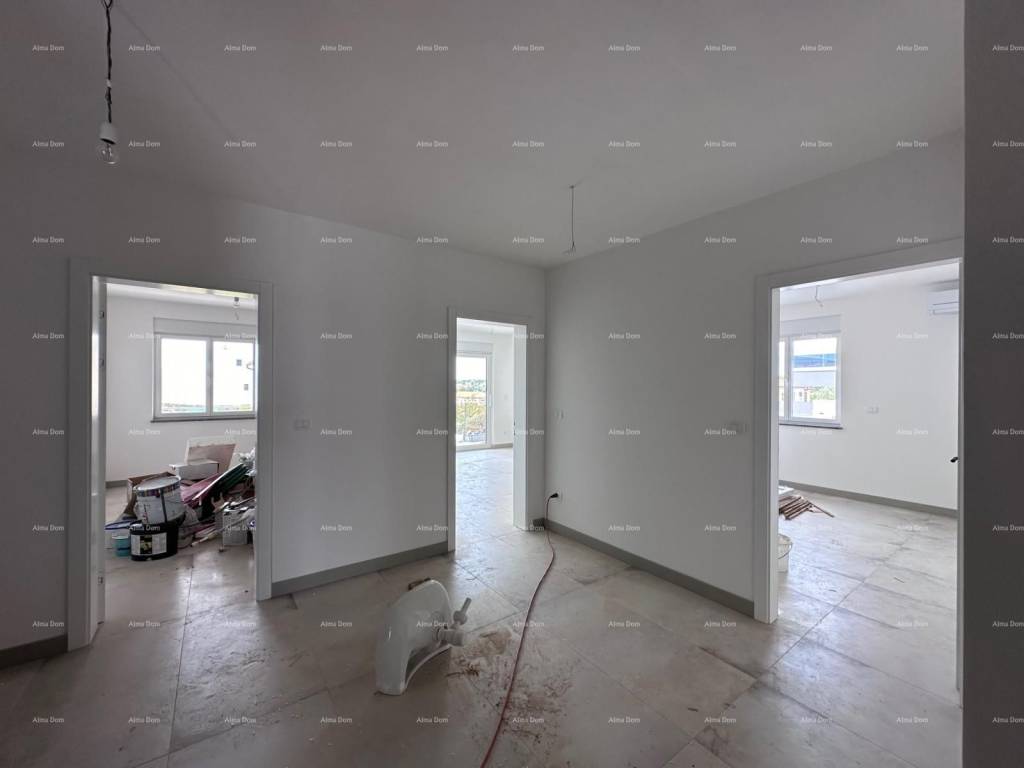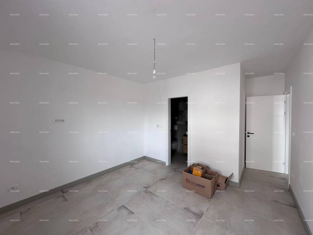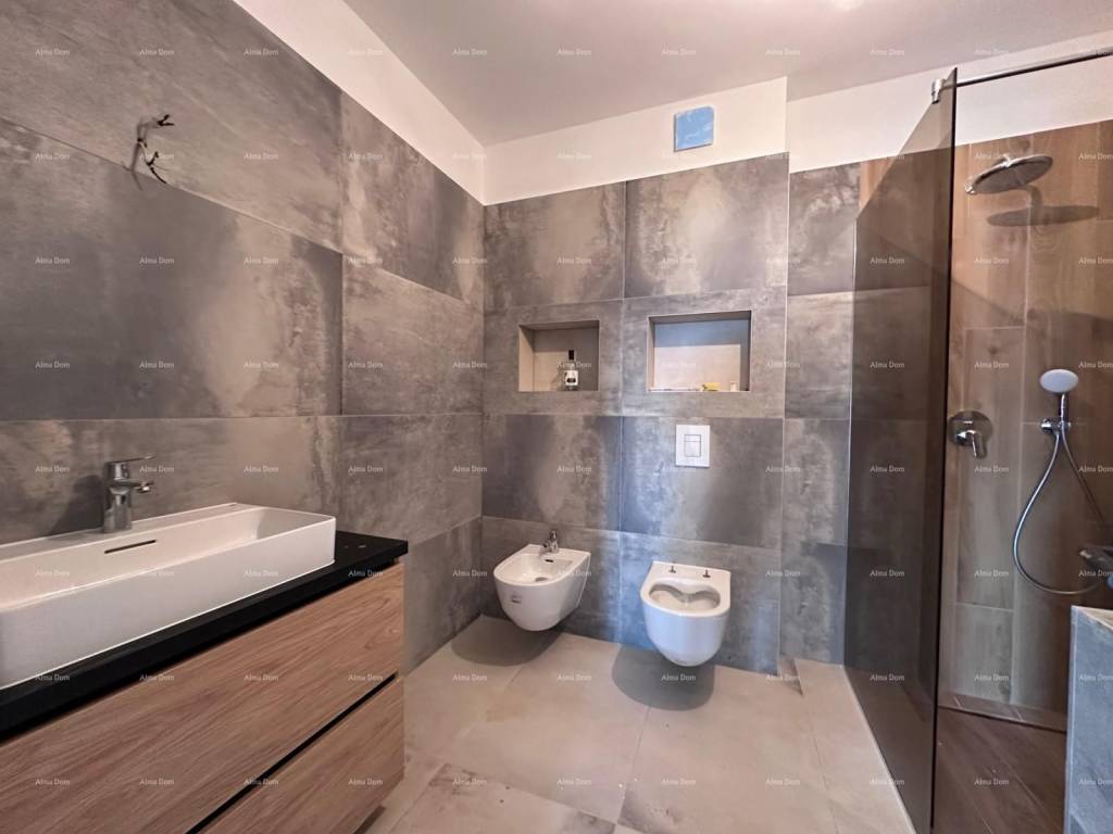 Blizina Banjola! Luksuzna novogradnja!Stan 1, prizemlje - 109.91 m2, sastoji se od sljedećih prostorija:- prostorno predsoblje od 16.47 m2,- kuhinja sa blagovaonom i dnevnim boravkom - 23.9 m2 iz koje se izlaze na veliku natkrivenu terasu od 16.50 m2 s pogledom na more.Na terasi su izvjedene sve potrebne instalacije za ugradnju ljetne kuhinji i jacuzzi. S terase niz stepenica je zona odmora s bazenom i sunčalištem. Kupca čeka odluka za obloge u bazenu -folija, pločice ili drugo.Dalje u stanu ima- spavaća sobe od 10.81 m2,- spavaće sobe od 12.73 m2 s izlazom na terasu- spavaće sobe od 14.64 m2 sa svojim kupatilom od 4.56 m2- kupatilo od 6.87 m2.Ukupne površine stana bez terasei drugih pripadajučih površina je 93 m2.Stanu pripada parkirno mjesto ispred zgrade.Podno grijanje u svim prostorijama, a svakoj prostoriji je zaseban termostat za regulaciju temperature.U dnevnom boravku je digitalni termostat koji se može paliti/gasiti preko mobilnog uređaja.U svakoj sobi je Mitsubischi klima uređaj.Prozore su troslojne s aluminijskom stolarijom.Na svim prozorima su električne rulete i komarnici.Zgrada je izolirana termo fasadom od 15 cm.Info:+385 91 611 5706azra@almadominvest.com+385 98420885www.almadom.com.