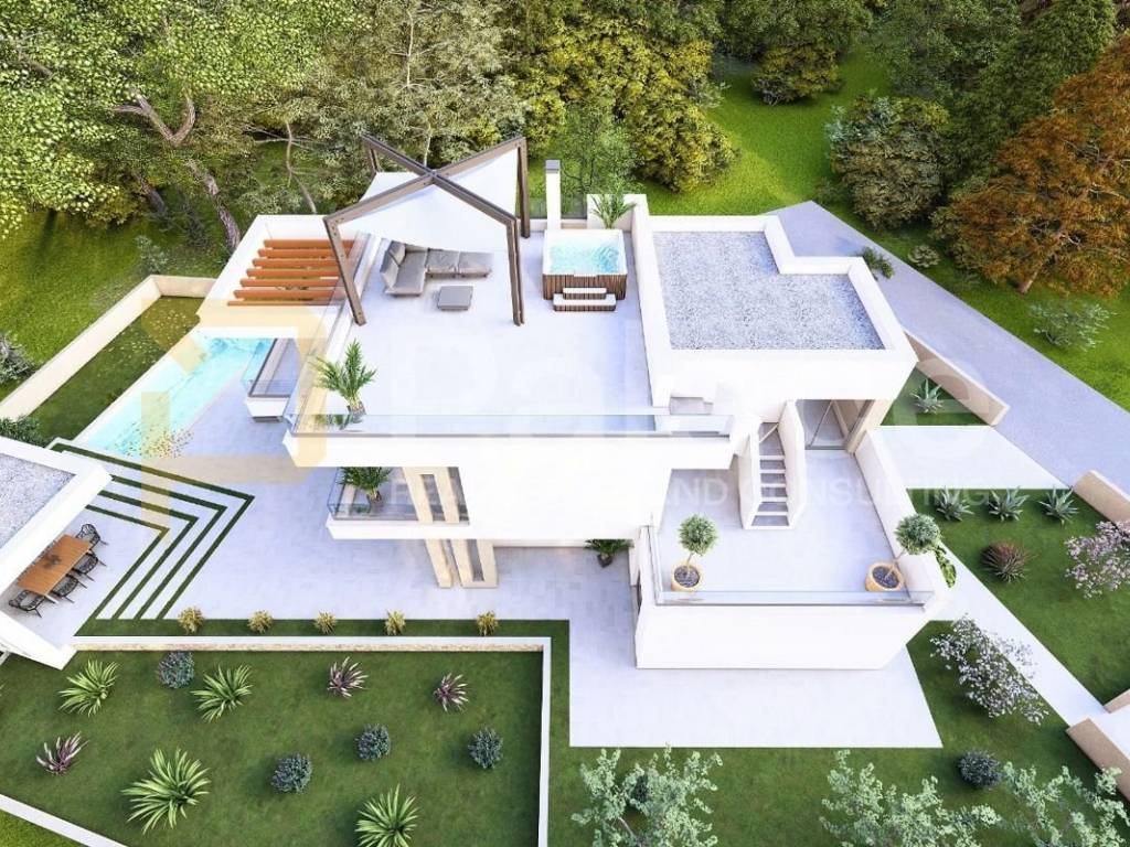 Na prodaju je građevinsko zemljište površine 848 m² smješteno u mirnom i atraktivnom dijelu Vrsi, udaljeno svega 800 metara od mora. Zemljište dolazi s projektom za gradnju moderne vile ukupne površine 218 m². Projekt uključuje prizemlje i kat dimenzija 17,60 x 11,30 m , bazen i pomoćne građevine s nadstrešnicom (dimenzija 6,20 x 4,20 m).