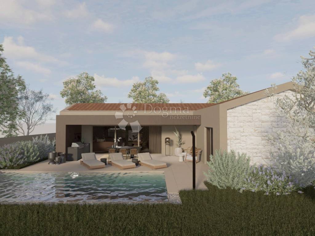 U mirnom okruženju, u blizini Tinjana i Pazina, prodajemo modernu prizemnu - novogradnja s tri spavaće sobe.