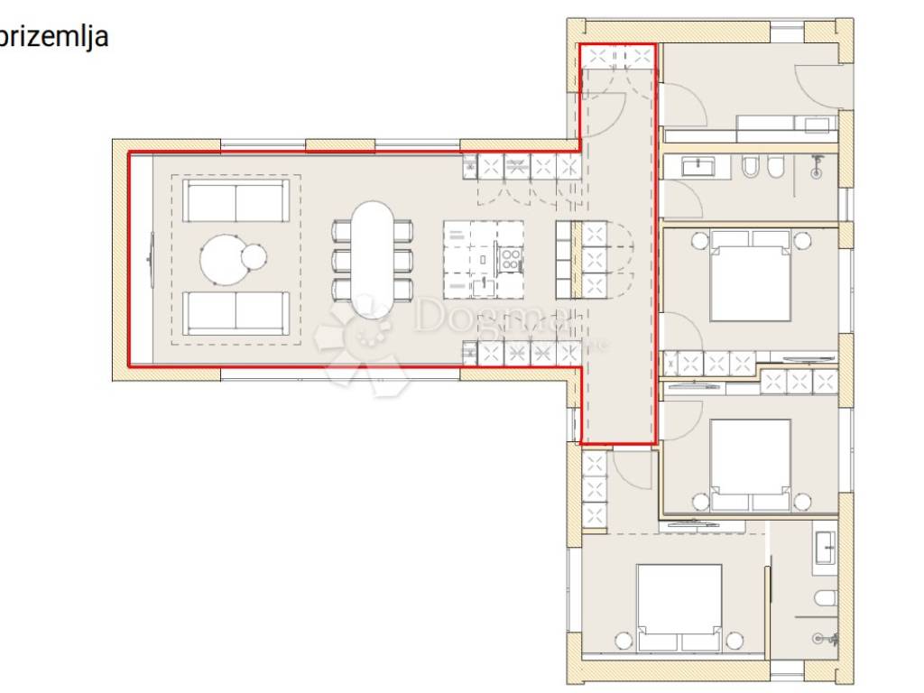 - prostranog dnevnog boravka s kuhinjom i blagovaonicom s izlazom na natkrivenu terasu
