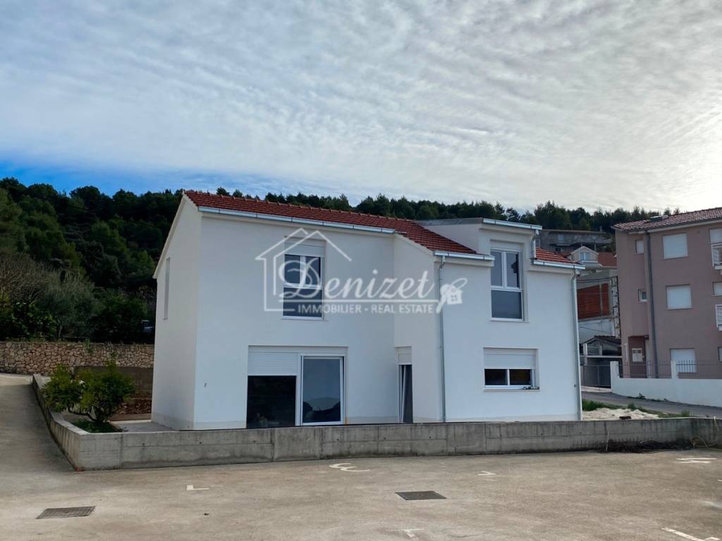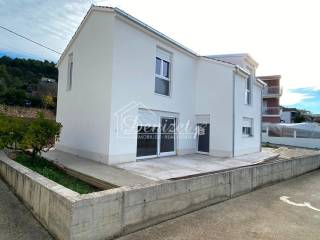 Na prodaju je novoizgrađena samostojeća kuća s tri spavaće sobe u Poljicima, u blizini Marine. Kuća se nalazi na parceli površine 310 m² te raspolaže s 109 m² stambenog prostora raspoređenog na prizemlje i kat. U prizemlju se nalazi otvoreni koncept kuhinje, blagovaonice i dnevnog boravka, kao i gostinjski WC. Iz kuhinje i dnevnog boravka izlazi se na terasu. Unutarnje stepenice vode na kat na kojem se nalaze dvije spavaće sobe i dvije kupaonice. Fasada i vanjski radovi su u velikoj mjeri dovršeni. Unutarnje uređenje moguće je prilagoditi željama budućih vlasnika te nije uključeno u cijenu. Postoji i mogućnost izgradnje bazena. Kući pripadaju dva parkirna mjesta, a orijentirana je prema zapadu. Udaljenosti: 200 m zračne linije do mora – Marina 4 km – stara gradska jezgra Trogira 10 km – Zračna luka Split 16 km.