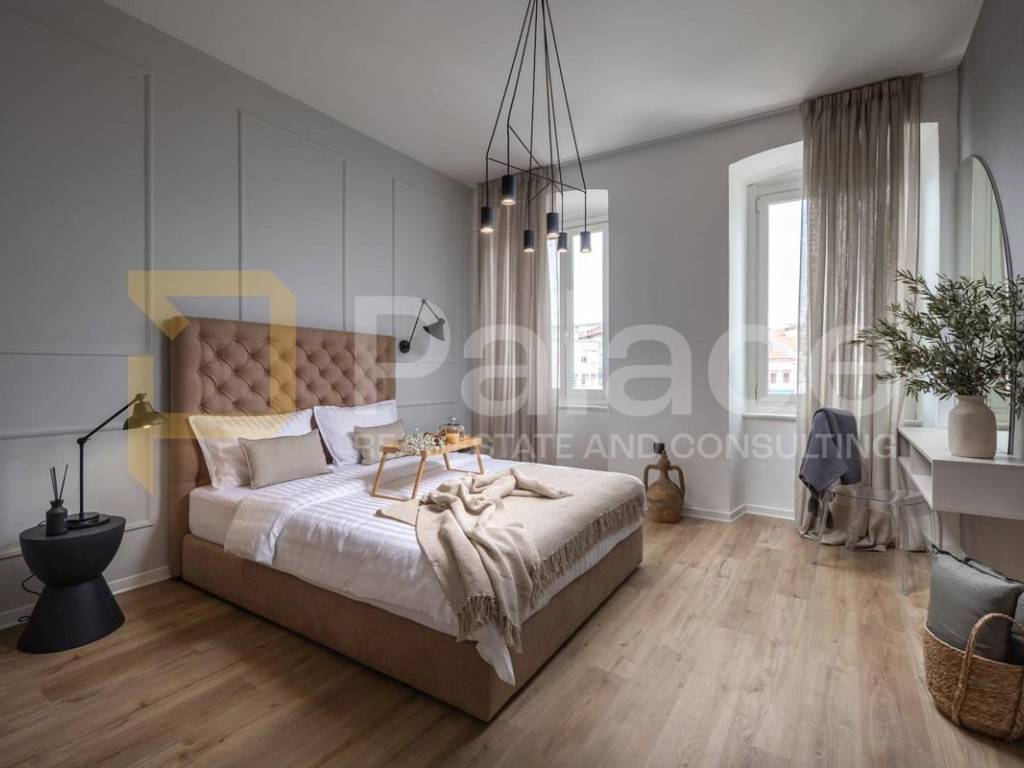 Na prodaju je ovaj moderno uređeni stan od 50 m² smješten je na drugom katu manje stambene zgrade u samom centru Pule. Zgrada je izgrađena 1968. godine, no stan je potpuno renoviran 2022. godine, čime je dobio suvremen i sofisticiran izgled. Opremljen je dizajnerskim namještajem koji stvara elegantan i ugodan ambijent.