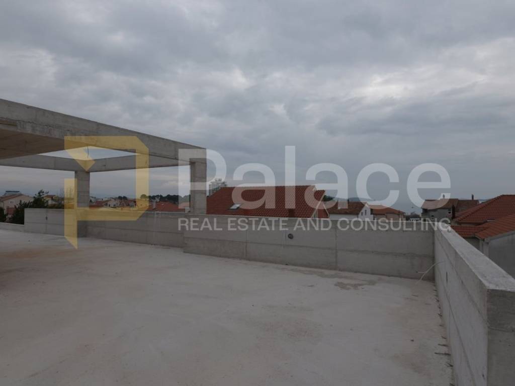 Krovna terasa poseban je element ovoga stana; ova velebna terasa, prostire se cijelim krovištem zgrade na površini od 153m2, od kojih je jedan dio natkriven, a sa cijele terase se pruža jedinstveni pogled na more i okolicu. Ova terasa poziva na druženje i ugodan boravak na otvorenom, te kao takva nudi poseban dojam eskapizma.