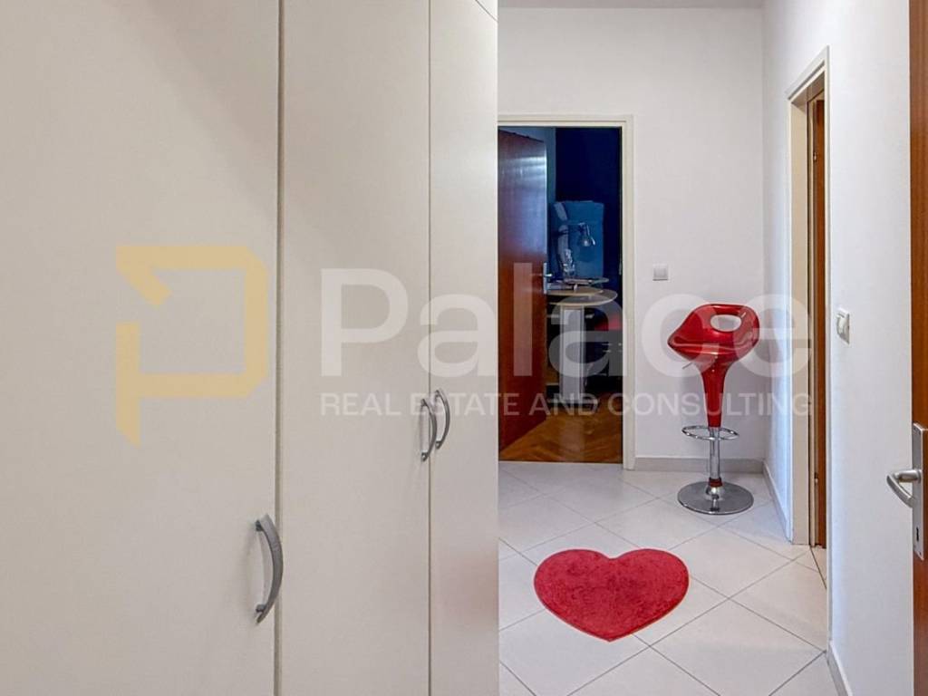 Stan se sastoji od 3 spavaće sobe, dnevnog boravka, kuhinje, i dvije terase. Dvije spavaće sobe i dnevni boravak imaju izlaz na veliku terasu. Stan također posjeduje veliki vlastiti vrt, vlastiti ulaz u dvorište te dva parkirna mjesta.