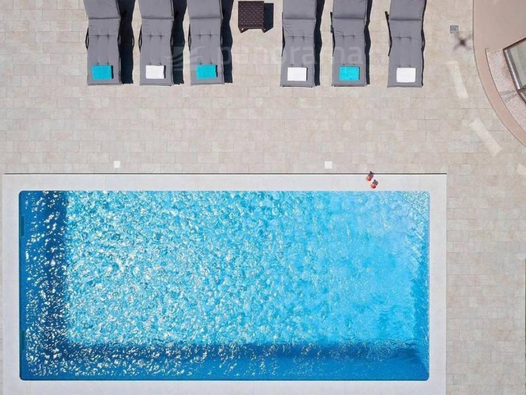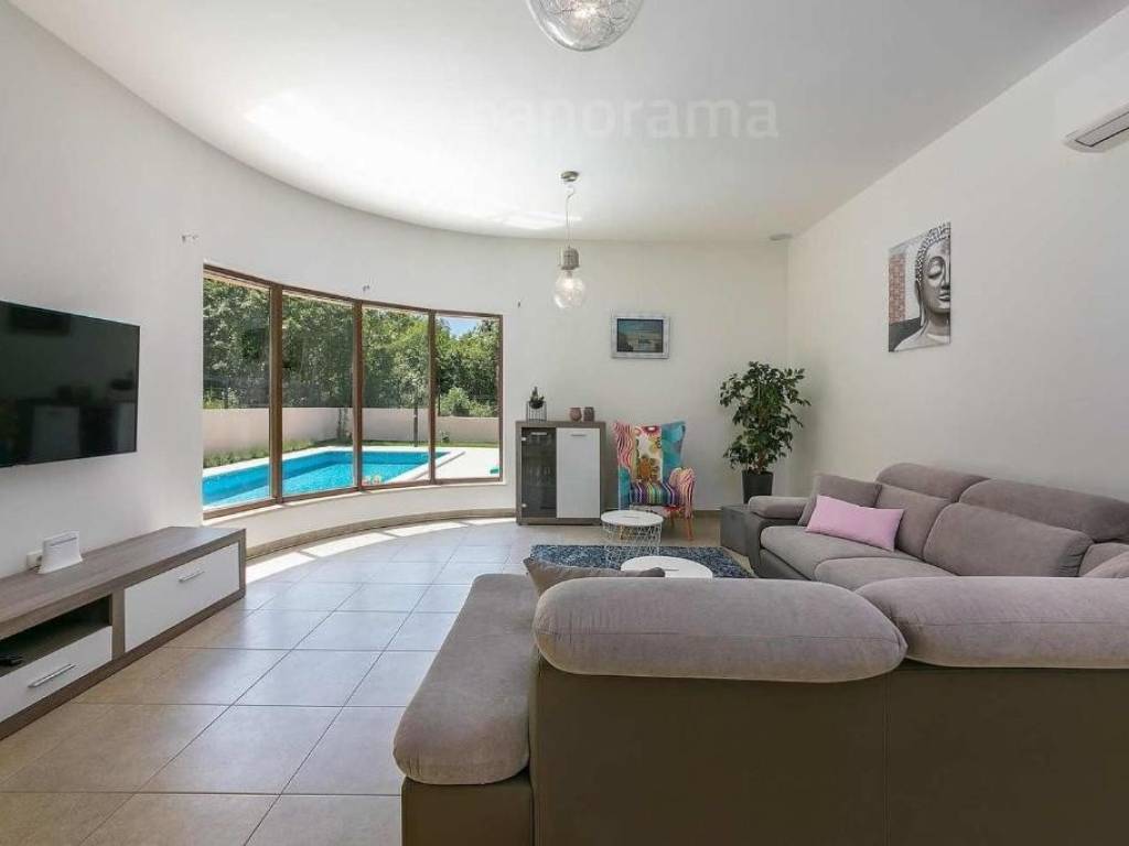 Moderna i praktična villa površine je 205 m a sastoji se od potpuno opremljene kuhinje s blagovaonom i izlazom na terasu, svijetlim i prostranim dnevnim boravkom kojim dominira staklena stijena s koje se pruža pogled na bazen, jedne kupaonice s kadom u hodniku, 3 spavaće sobe od čega jedna spavaća soba s vlastitom kupaonicom. Sve sobe su klimatizirane i imaju izlaz prema bazenu. Kuća ima također ugrađeno podno grijanje i instalaciju za solarne panele.