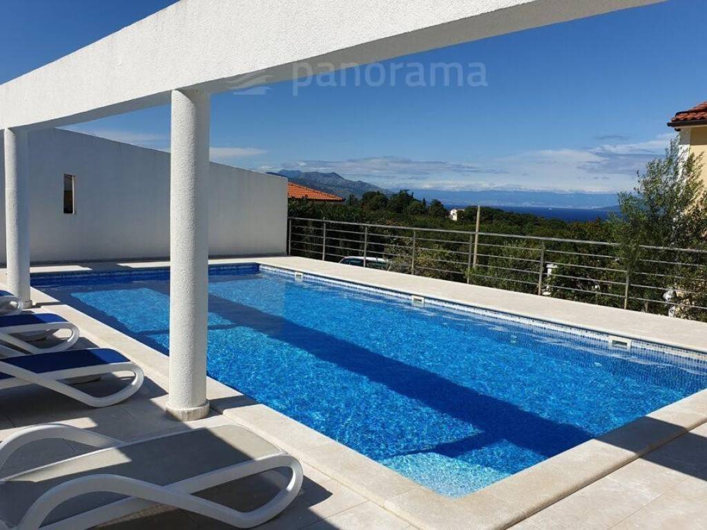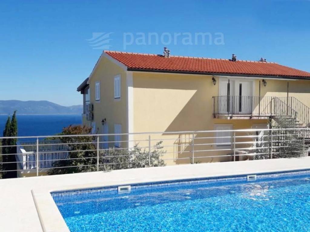 Ova apartmanska kuća s bazenom nalazi se u malom mjestu istočne Istre i njezina je najveća ljepota prekrasan, otvoren pogled na more iz svih stanova, pa čak i onih u prizemlju. U blizini ove vile nalazi se nekoliko kilometara obale za otkrivanje i istraživanje, a sama kuća okružena je mirom i zelenilom.