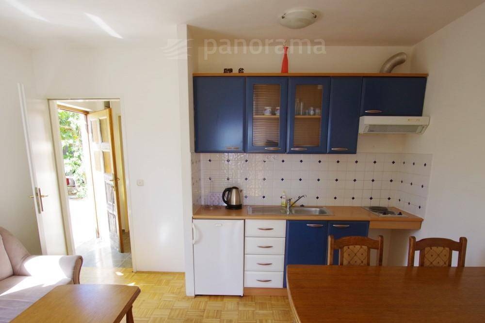 U prizemlju se nalaze 3 apartmana i ostava površine cca 50 m2 s kupaonom koja se može prenamijeniti u dodatni apartman. Jedan apartman površine je 35 m2 i sastoji se kuhinje i dnevnog dijela, odvojene spavaće sobe i kupaone. Apartmanu pripada i terasa. Druga dva apartmana su površine 32 m2 i sastoje se od kuhinje s blagovaonom i dnevnim dijelom te odvojene spavaće sobe s kupaonom. Svakom od apartmana pripada terasa s koje se pruža pogled na morsko plavetnilo.
