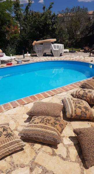 Kuća ima galeriju, tri spavaće sobe, dnevni boravak, kuhinju s blagovaonom, sanitarni čvor, terasu, a ispred kuće nalazi se bazen 25m2.