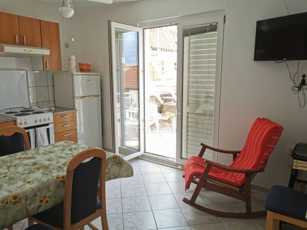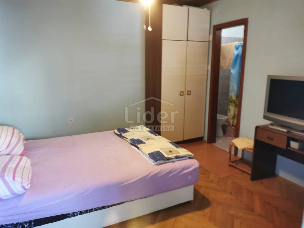 U prizemlju se nalazi kuhinja s blagovaonom , ostavom, spavaća soba i kupaona te još jedna spavaća soba s kupaonom koja ima posebni ulaz ali i mogućnost povezivanja s ostatkom stambenog prostora. Katovi su povezani unutarnjim i vanjskim stepenicama. Na gornjem katu se nalaze dvije sobe i kupaona te kuhinja s blagovaonom koja vodi na terasu s koje se može doći na još jednu terasu s pogledom na more.