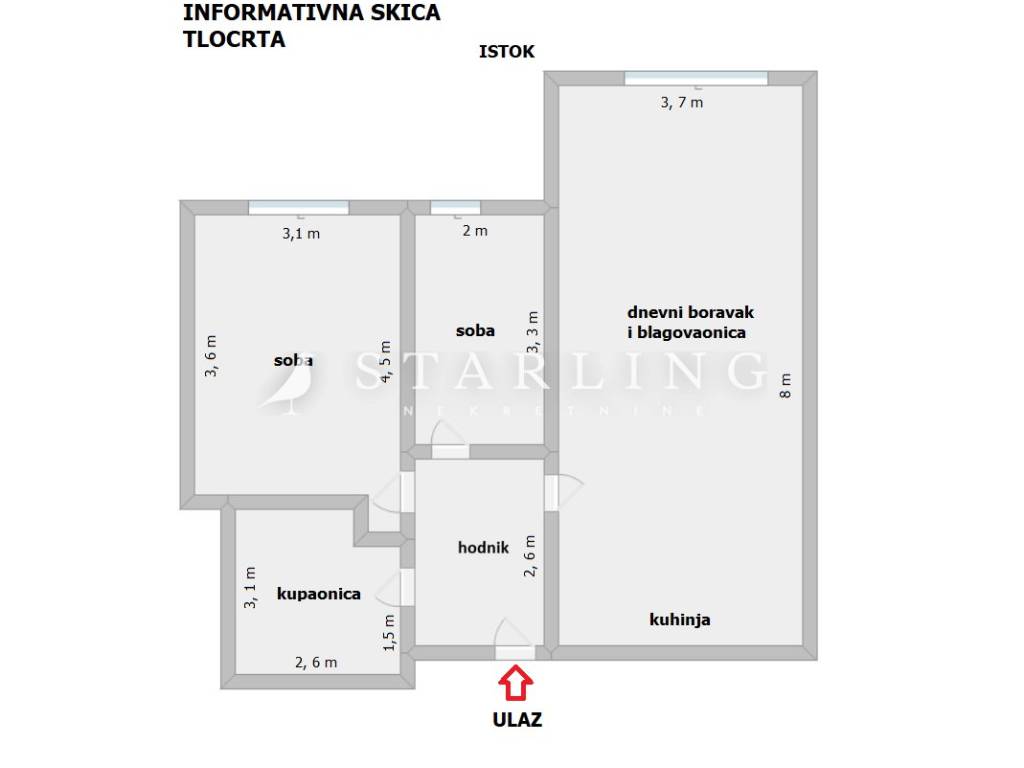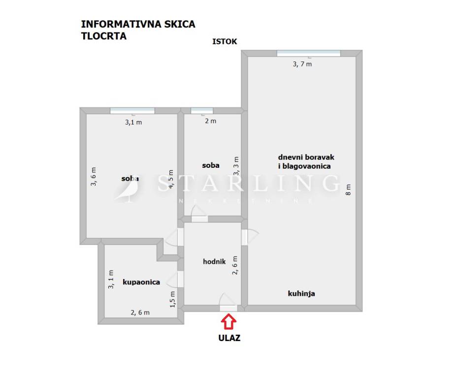 Stan se iznajmljuje nenamješten, osim opremljene kuhinje. Idealna prilika za najmoprimce koji žele urediti prostor prema vlastitim željama.