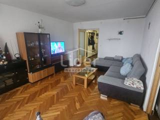 Sastoji se od dnevnog boravka veličine 25 m2 sa izlazom na prostranu lođu sa koje se pruža pogled na more, kuhinje, spavaće sobe sa još jednom lođom sve južno orijentirano te dječje sobe na istoku, kupaonice, zasebnog wc-a i špajze. Održavan i uredan, sa kvalitetnim parketom. U stanu je postavljena PVC stolarija te etažno centralno grijanje na plin i klima. Izuzetno je topao i sunčan, izvrsnog je rasporeda. Lokacija je mirna, sa puno zelenila i parkinga te parkova oko zgrade. Stan je lako pretvoriv u 3s+db. U suterenu zgrade nalazi se zidana drvarnica.