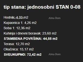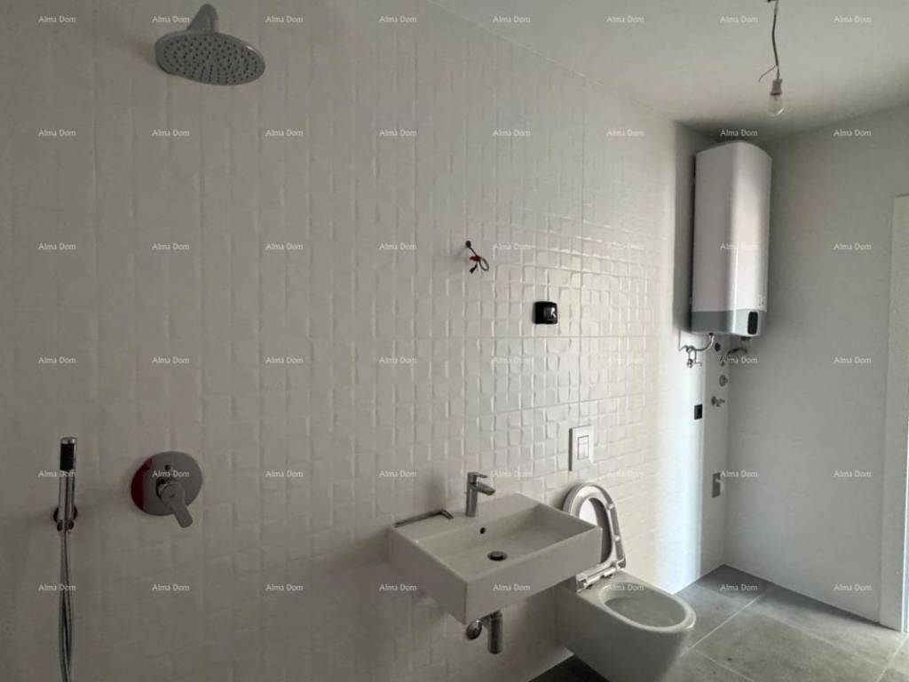 U samom gradu Umagu, u sklopu suvremenog stambenog projekta s 122 stana, Prodaje se stan u prizemlju zgrade, ukupne površine 57,25 m², s vrtom, terasom, spremištem i parkirnim mjestom. Stan oznake 0-08 nalazi se u prizemlju i sastoji se od:Ulaznog prostoraKupaoniceProstrane spavaće sobeOtvorenog dnevnog boravka s kuhinjom i blagovaonicomIzlaza na terasu (12,70 m²) i vrt (15,17 m²)Uz stan dolazi i:Spremište (3,38 m²)Vanjsko parkirno mjesto (12,50 m²)Tehničke karakteristike:Armirano-betonska konstrukcijaTermoizolacijska fasada (ETICS, 10 cm)Visokokvalitetna PVC stolarija, podizno-klizne stijeneElektrične rolete u sobamaMultisplit klimatizacija u svim prostorijamaPrvoklasna keramika i parketVlastito brojilo struje i vodeVideo parlafon, internet i TV priključakZgrada sadrži:74 garažna mjesta, 82 vanjska i 25 natkrivenih parkirnih mjestaUkupno 105 spremištaLift i stubišta iz 4 glavna ulazaPodrumska etaža s garažama i komunikacijomStanovi od 1. do 3. kata.Lokacija:100–500 m od vrtića, škole, dućana, sportskih sadržaja i centra700 m do mora, šetnice i gradske plaže.Završetak radova planiran je krajem 2025. godine.Za više informacija stojimo vam na raspolaganju:Azra +385 91 611 5706 +385 98 420 885 azra@almadominvest.com.