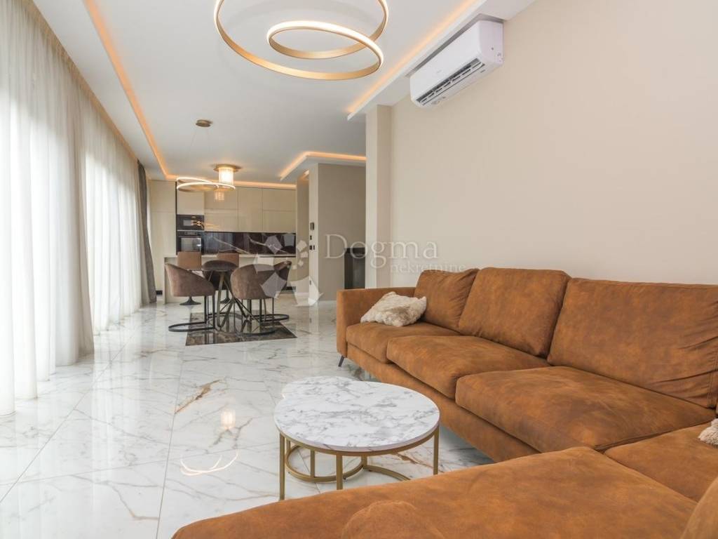 stubište -galerija ,prostran dnevni boravak s ogromnom terasom , kuhinja sa svim kućanskim aparatima , smart -home sustav, video portafon , električni sistem roleta,svi luksuzni materijali vrhunske kvalitete u opremanju ,stolarija,mramor, kaljeno staklo,parket troslojni ( podno grijani),najmodernija tehnika ručnog oslikavanja zidova +podovi epoxy,indirektna luksuzna rasvjeta ,prvoklasna keramika villeroy&boch,protuprovalna vrata