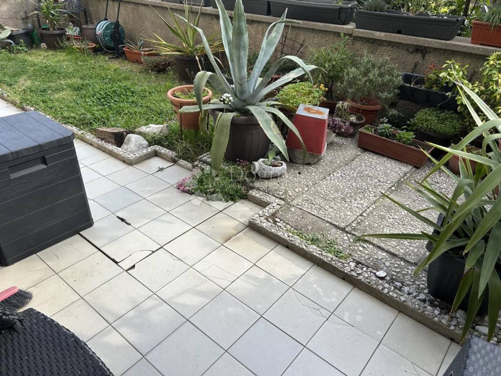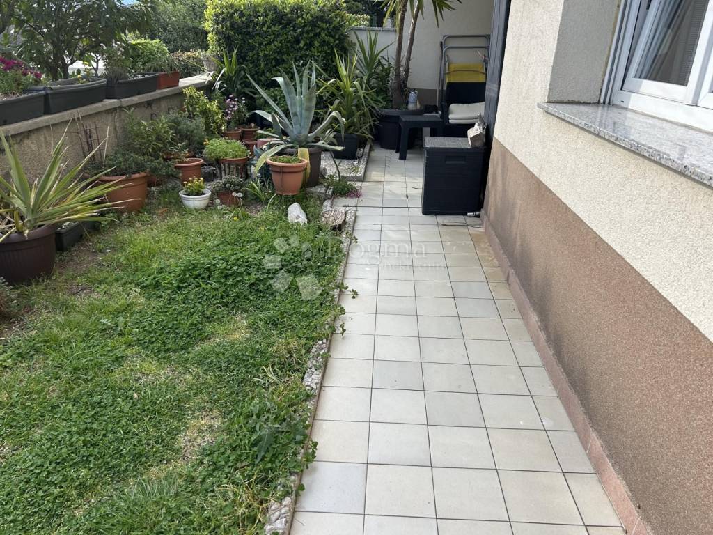 Stan sastoji se tri spavaće sobe , kupaonice, ostave i kuhinje sa blagavaonice iz koje se izlazi na terasu i vrt s kojeg se pruža pogled na more, ukupne površine 89.46m2