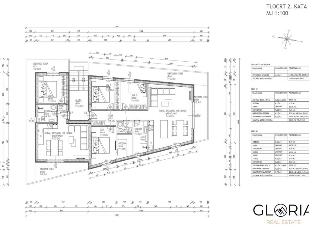 Ukupna neto površina 113,80 m2 (95,15 m2 – prodajna površina)