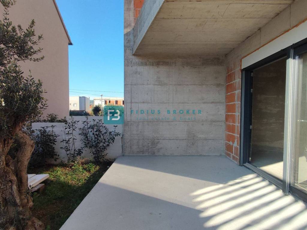 VODICE - Na prodaju moderna dvojna kuća s vrtom u mirnom okruženju, udaljena samo 650 m od poznate plaže Hangar i centra grada!