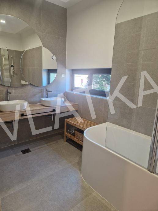 Stan je potpuno opremljen kvalitetnim namještajem i uređajima (Nolte kuhinja, Bosch, Miele), ima podno grijanje u renoviranoj kupaonici, pripremu za kamin, Vimar pametni sustav i električne rolete.